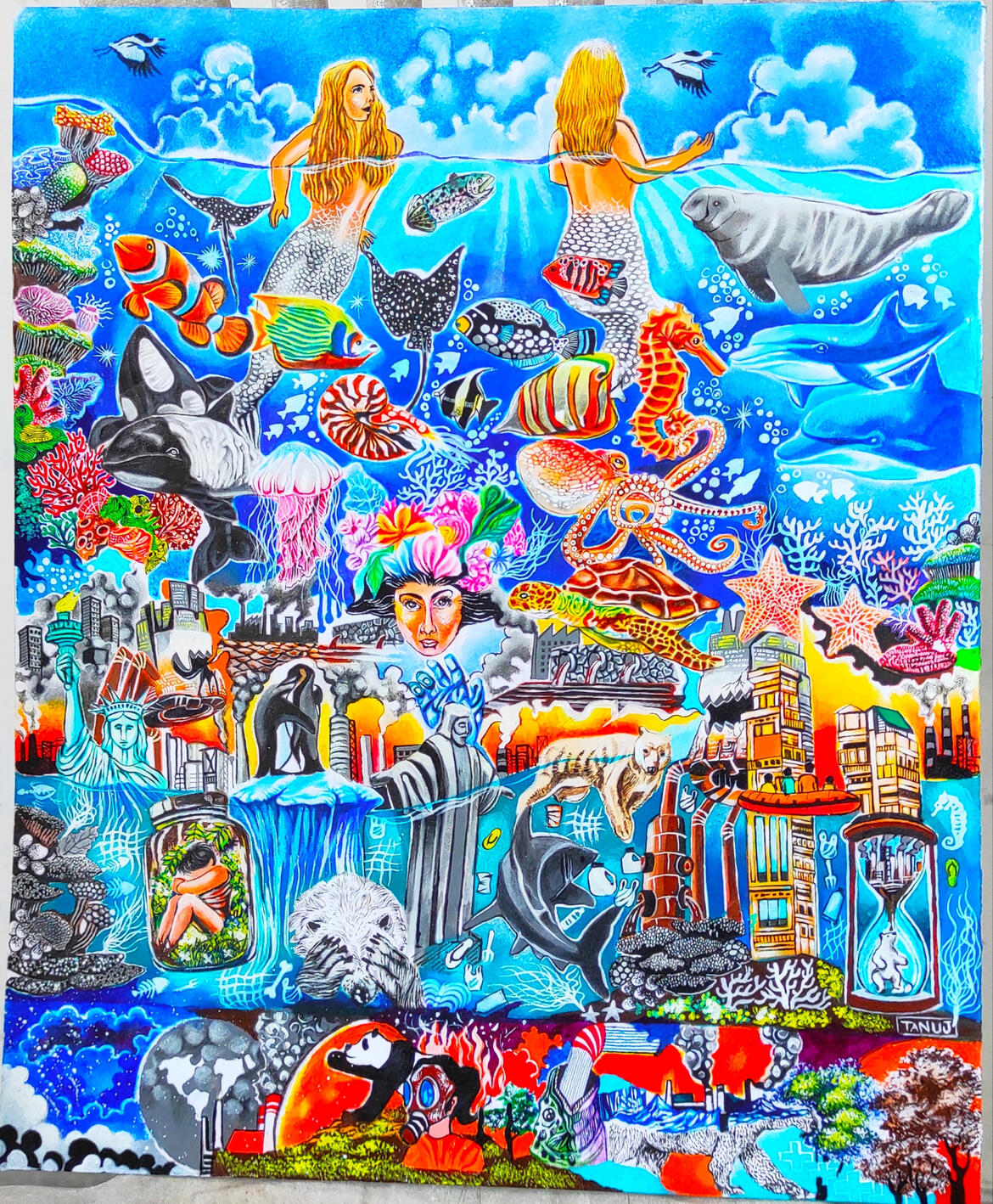 Tanuj S!Tanuj's (@artisttanuj) art totally astounded us with the amount of depth, story, and detail that went into the piece! Our team especially loved the little penguins hugging amid waves of royal blue oceans.